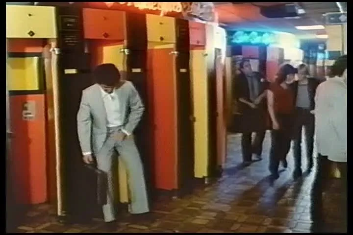 The scene opens on a dude standing alone on a dimly lit staircase, but that doesn’t last long. It cuts to a public restroom where five guys are pissing at urinals, one with an afro — not part of the action, just scene setting. Real meat starts in the bedroom: a brunette with long dark hair and surprisingly full tits is grinding against a slim blonde on a couch. Both totally nude, faces close, kissing deep before she starts eating the blonde’s pussy. They switch positions a few times — lots of close-ups on the oral, tongue going in deep, fingers rubbing clit. The brunette rides the blonde’s face too, grinding slow and moaning, both fully into it. Lighting stays low throughout, feels intimate, like a private moment caught on camera.